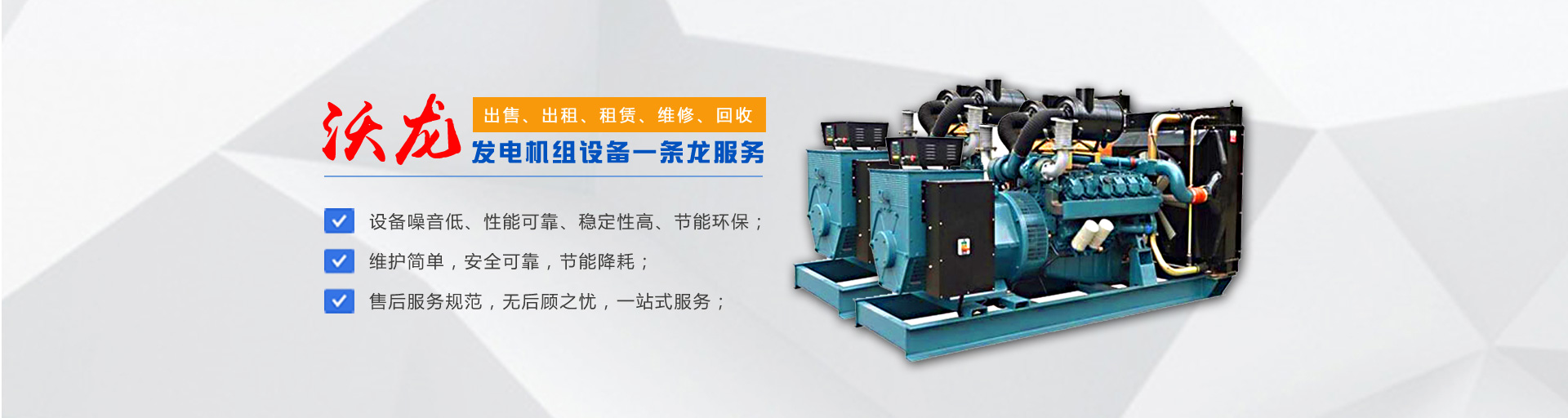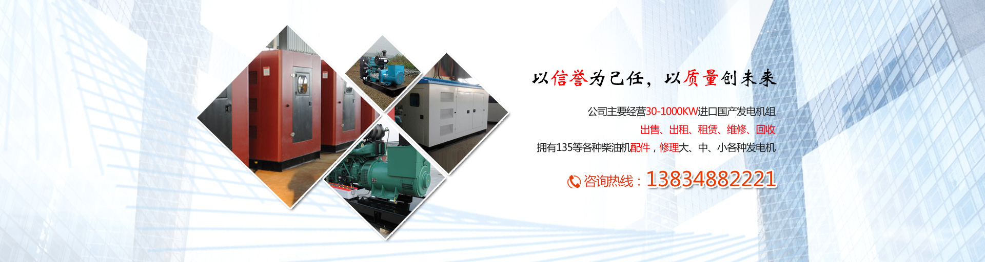 公司主要經(jīng)營(yíng)30-1000KW進(jìn)口國(guó)產(chǎn)發(fā)電機(jī)組的出售、出租、租賃、維修、回收,擁有135等各種柴油機(jī)配件,修理大、中、小各種發(fā)電機(jī)。能隨時(shí)為廣大客戶(hù)提供各種進(jìn)口及國(guó)產(chǎn)品牌發(fā)電機(jī)組。配備專(zhuān)業(yè)司機(jī)和維修維護(hù)人員,專(zhuān)業(yè)的服務(wù)、先進(jìn)的設(shè)備,現(xiàn)場(chǎng)使用零故障。本公司發(fā)電機(jī)組具備以下特點(diǎn):噪音低、性能可靠、穩(wěn)定性高、節(jié)能環(huán)保。我們可以滿(mǎn)足用戶(hù)長(zhǎng)短期用電;面向建筑工地、公路建設(shè)、地鐵施工、野外作業(yè)、商場(chǎng)備用、醫(yī)院應(yīng)急、影視媒體、單位供暖等多家企事業(yè)單位提供租賃業(yè)務(wù)。